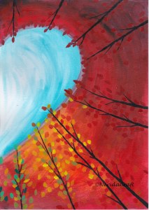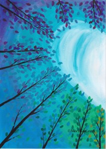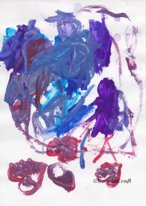 I put here the first paintings we made (as the kids also wanted their works to show here, let me share those as well):