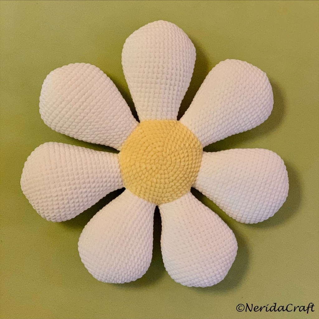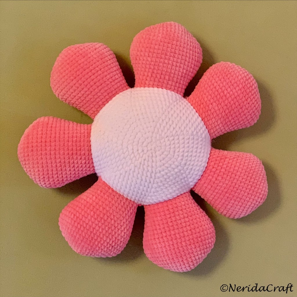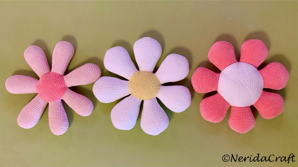 After crocheting so many pillows recently I felt I still need a new one, a flower-shaped pillow that I haven’t made yet. Finally I ended up with three 😊: